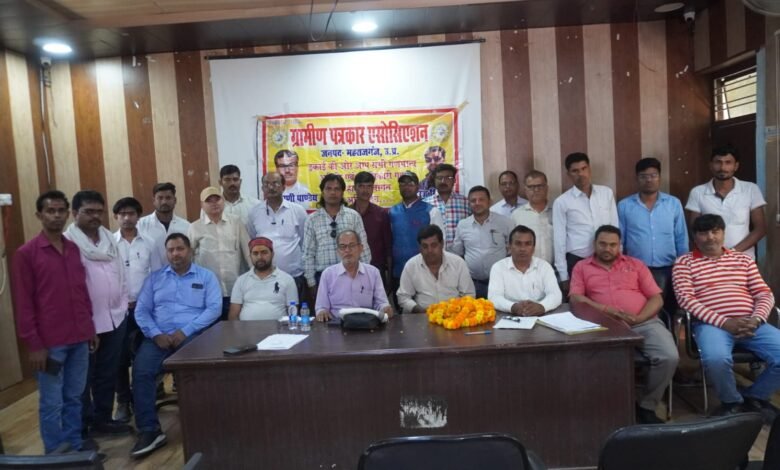 महराजगंज। जिले के सदर ब्लॉक सभागार में रविवार को ग्रामीण पत्रकार एसोसिएशन की एक महत्वपूर्ण बैठक आयोजित की गई, जिसमें बड़ी संख्या में पत्रकारों ने भाग लिया। बैठक में संगठन की मजबूती, पत्रकारों की सुरक्षा और उनके अधिकारों से जुड़े मुद्दों पर विस्तार से चर्चा की गई।